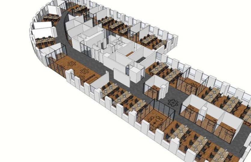בניין משרדים ומסחר, מודרני וייצוגי, שמונה קומות של משרדים להשכרה בתל אביב, קומת מסחר פעילה ומאוכלסת בסניף בנק, חזיתית לרחוב ריבל.
